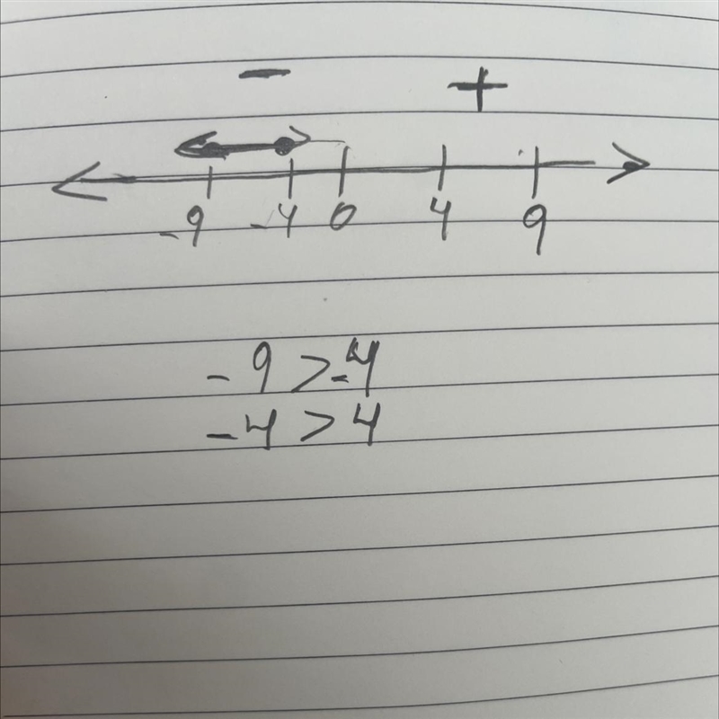 On the number line, negative numbers are represented on the left side of the zero. They are used to represent the amount of loss. -9, you lost $9 and -4, you lost $4.