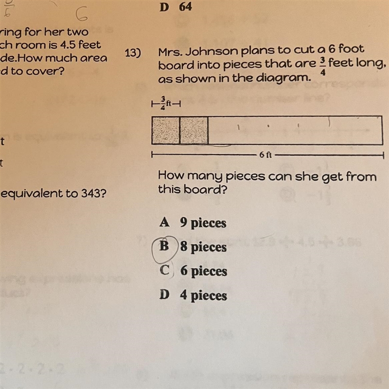 To find out how many pieces you can get from cutting a 6 foot board into 3/4 pieces, divide 6 by 3/4