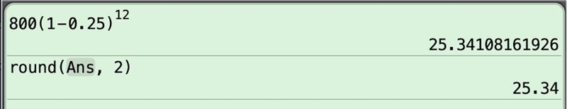 You want the remaining debt after 12 months if 25% of the remaining balance of an initial $800 debt is paid each month.