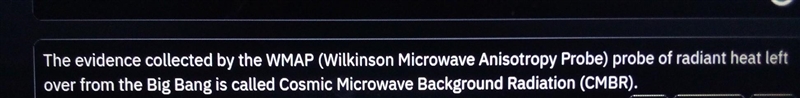Question: What name is given to evidence collected by the WMAP probe of radiant heat left over from the Big Bang?
