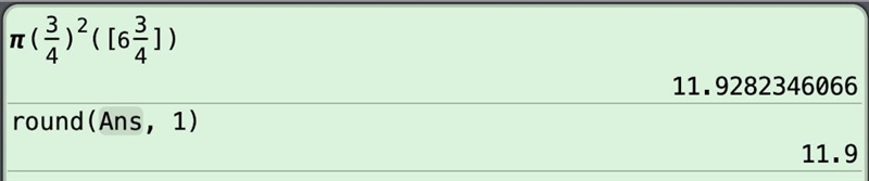 V = π(3/4 in)²(6 3/4 in) ≈ 11.9 in³