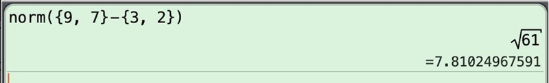 d = √((9 -3)² +(7 -2)²) = √(36 +25) = √61