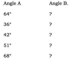 Given one of the complements, Angle A. Find the other complement, Angle B: