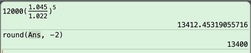 You want the real value in 5 years of a $12,000 investment that earns 4.5% interest compounded yearly and is subject to inflation at the annual rate of 2.2%.