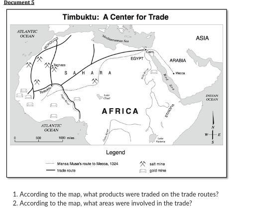 According to the map, salt and gold were traded on the trade routes. The areas that were involved in trade were Taghaza, Timbuktu, Morroco and Egypt.