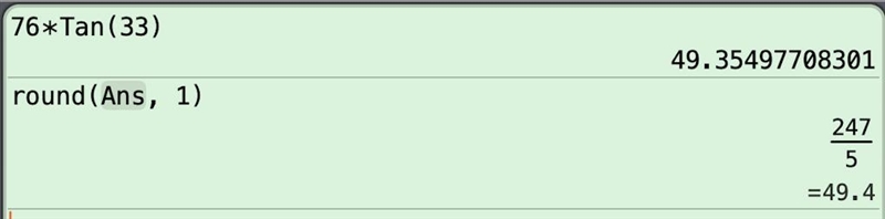 height = (76 ft)·tan(33°) ≈ 49.4 ft