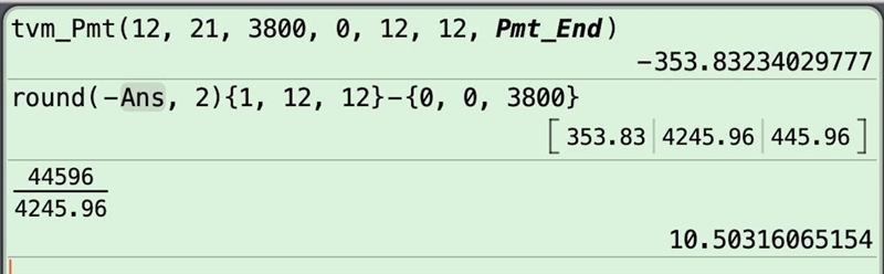 $445.96/($4245 -3800) × 100% ≈ 10.5%