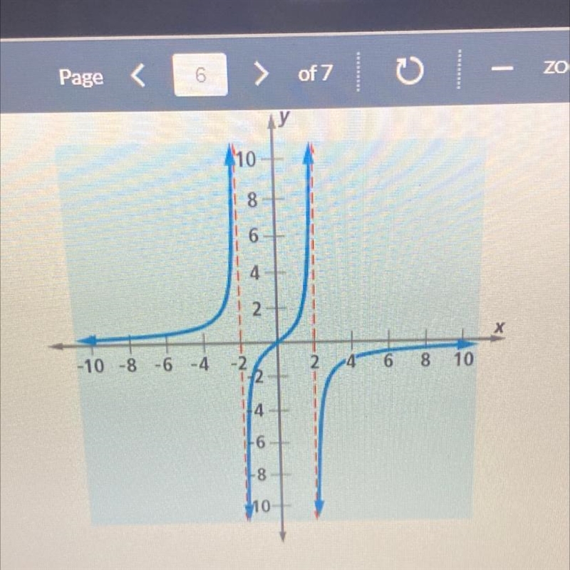 1. For a cubic function, we expect to see two hills or valleys. Looking at the given function, we can see that it is a rational function with a denominator of 4 - x². This indicates that the graph may have vertical asymptotes at x = 2 and x = -2. To capture the two hills or valleys, we should select a window that includes these vertical asymptotes.