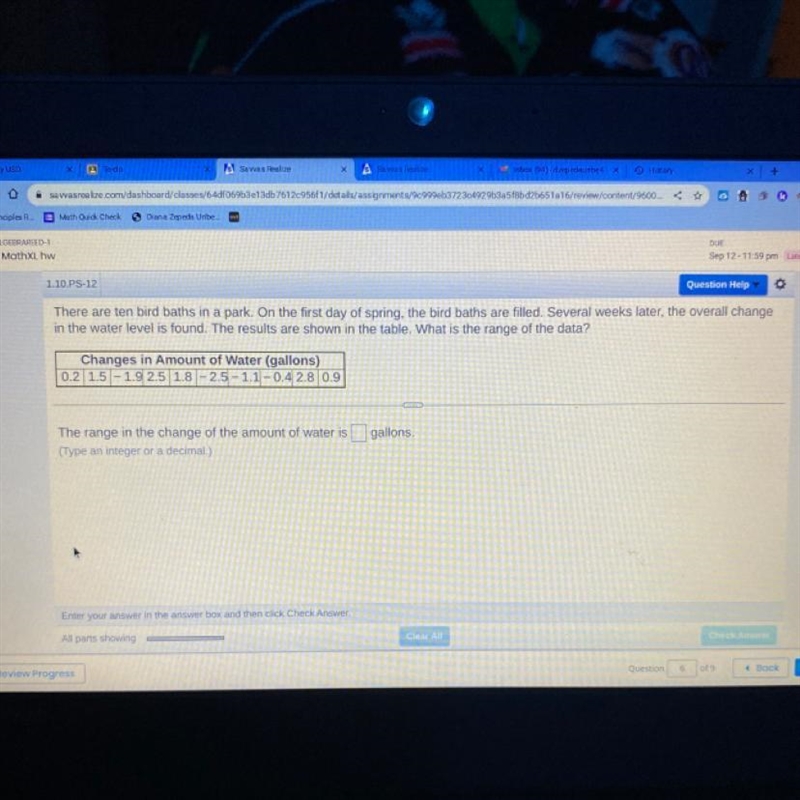 Thus, the range in the change of the amount of water is 5.3 gallons.