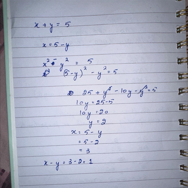 The sum of two numbers is 5 and difference of their squares is 5 . Find the difference of the numbers.