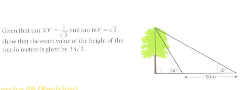 h = tan(60)×x = sqrt(3)×25 = 25×sqrt(3) m