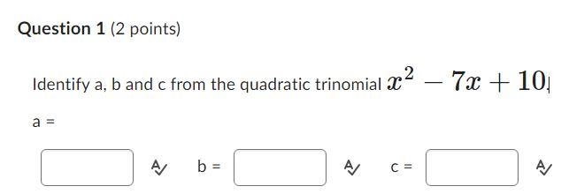 A quadratic trinomial is an algebraic expression that takes the form ax²+bx+c, where x is an unknown variable and a, b, and c are numbers.