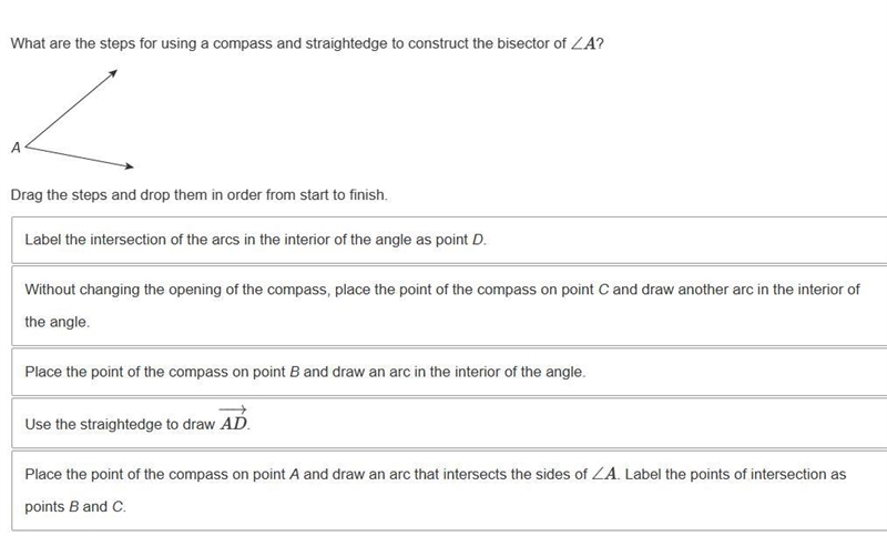 1. Place the point of the compass on point A and draw an arc that intersects the sides of...