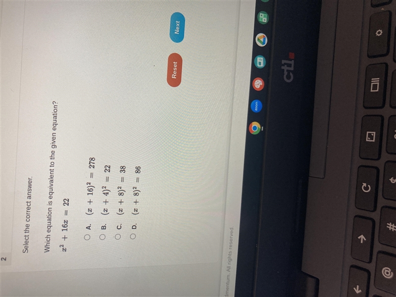 You want the vertex form of the quadratic equation x² +16x = 22.