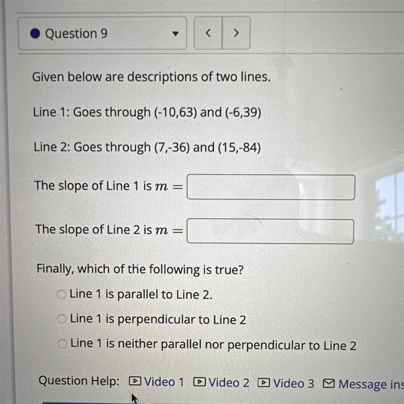 Line 2 is... -6! They might look perpendicular to each other but they are parallel to each other. Also HOPE COLLEGE IS GOOD.