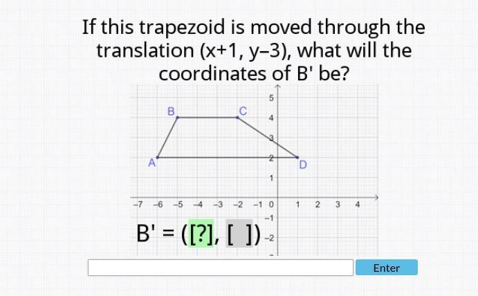 B is first located -5, 4 but when add one to x and minus three from y, you get the location -4,1. hope this helps.