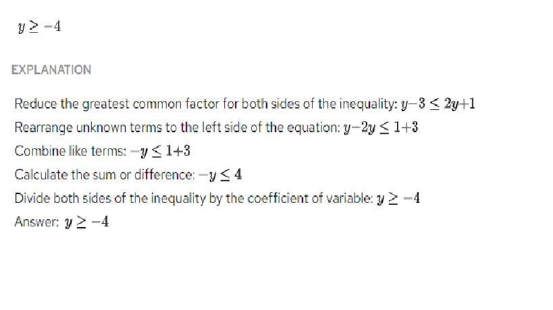 PLEASE HELP: Solve for y: 4(y-3) ≤ 4(2y+1)