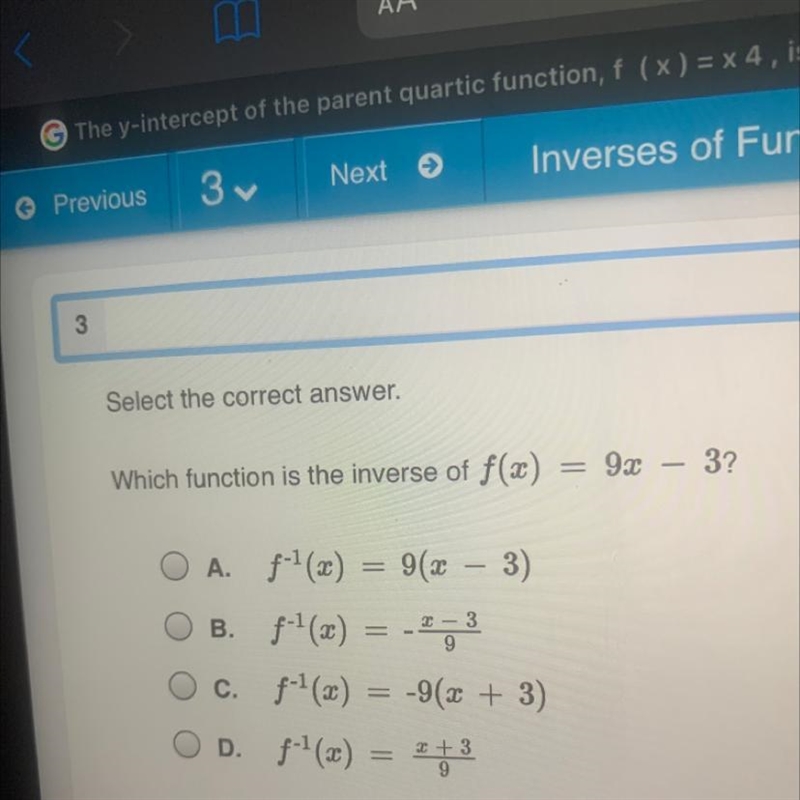 Explanation: I replaced f(x) with y. Then I swapped x and y. The goal from there is to solve for y to get the inverse.