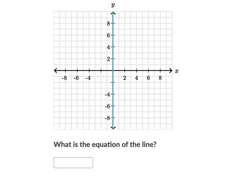 Here, the line has an x-intercept of 0, so the equation of the vertical line shown is x = 0.