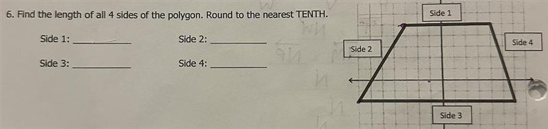 Someone pls help meee Find the length of all 4 sides of the polygon. Round to the nearest TENTH.