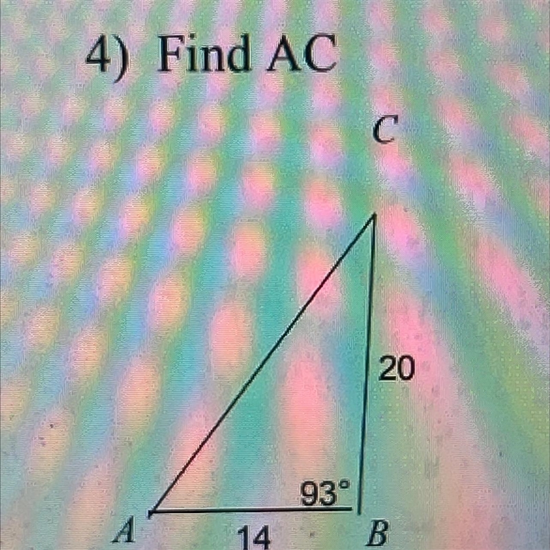 AC = √20² + 14² - 2(20)(14)·cos93 = √625.31 ≈ 25