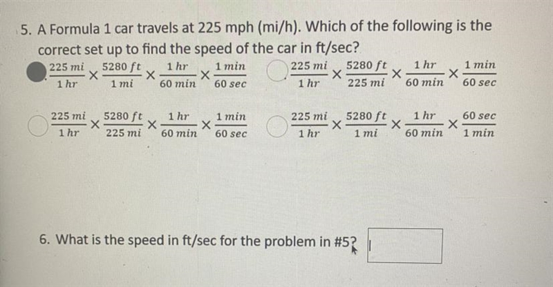 You'll find the answer at the bottom, To find the speed of the Formula 1 car in feet per second (ft/sec), we can use the conversion factors provided: