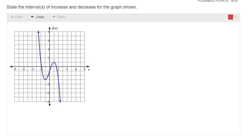Therefore, the intervals of increase and decrease for the graph shown are as follows: