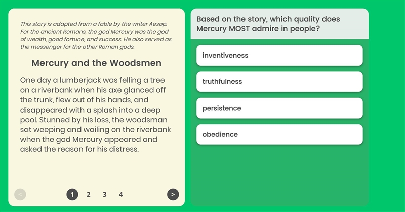Based on the story, the quality that Mercury most admires in people is inventiveness. In the story, when the lumberjack lost his axe in the river, he was distressed. However, when the god Mercury appeared and asked about his distress, the lumberjack did not simply give up or continue to lament. Instead, he explained what had happened and Mercury, impressed by the lumberjack's inventiveness, gave him a golden axe to replace the one he had lost.