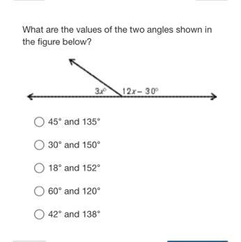 In the given options, the values of the two angles shown in the figure are 45° and 135°.