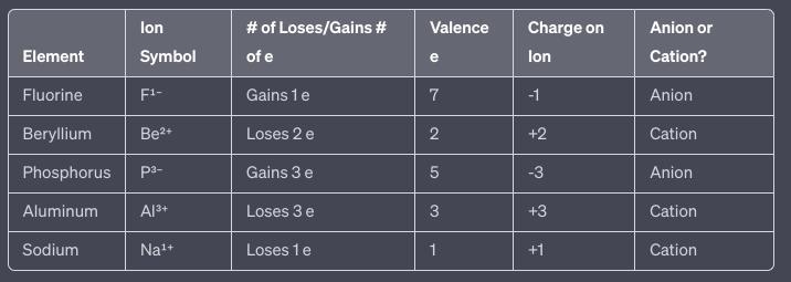 Fill in the table by choosing the correct answer from the dropdown choices in each cell. Note for the ion symbol, I am unable to write it as it