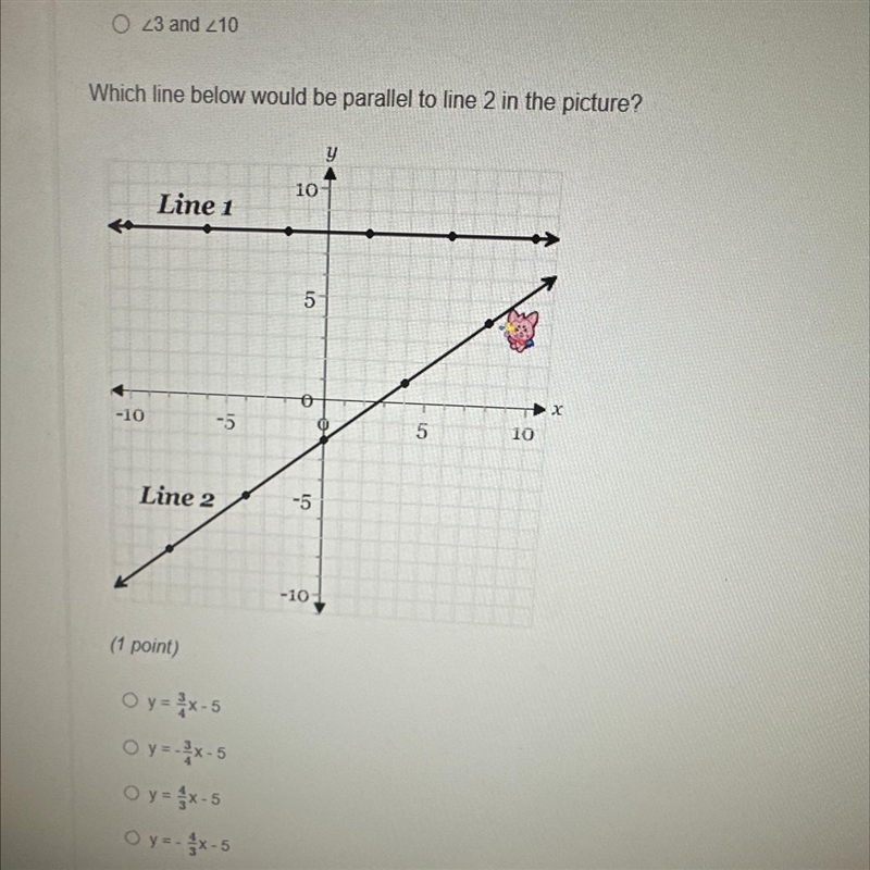 In order to find the correct answer, we need to find the slope of line 2 because, if we want the line to be parallel, it must have the same slope.