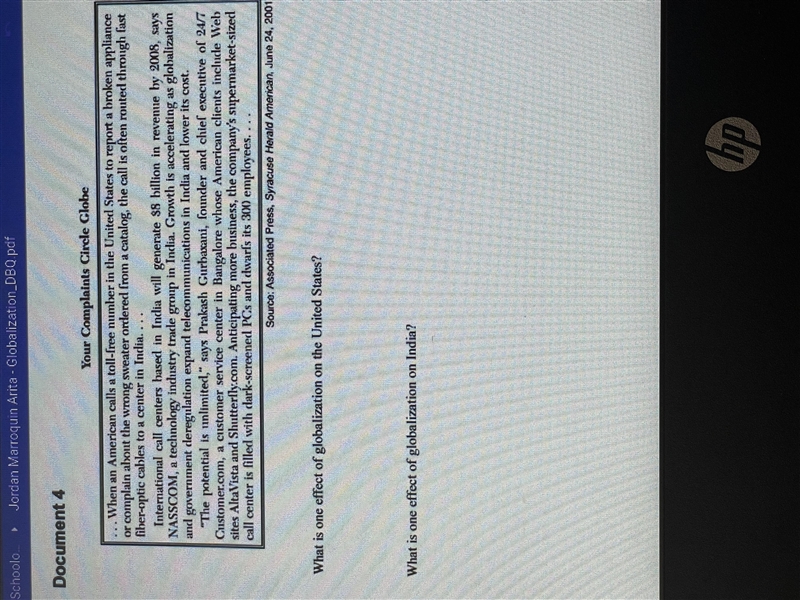 In summary, one effect of globalization on the United States is the outsourcing of customer service jobs to call centers in other countries, while one effect of globalization on India is the growth and expansion of its telecommunications industry, particularly in the call center sector.