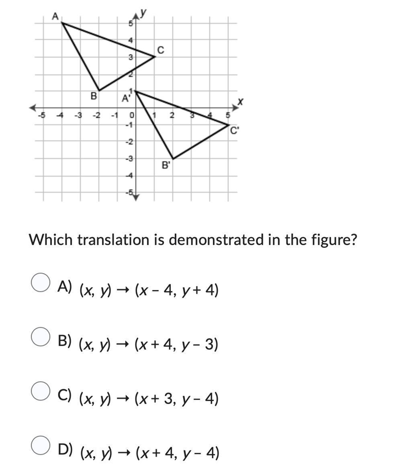 Step-by-step explanation: go backwards 4 means -4 up four mean 4 so A the answer it simple