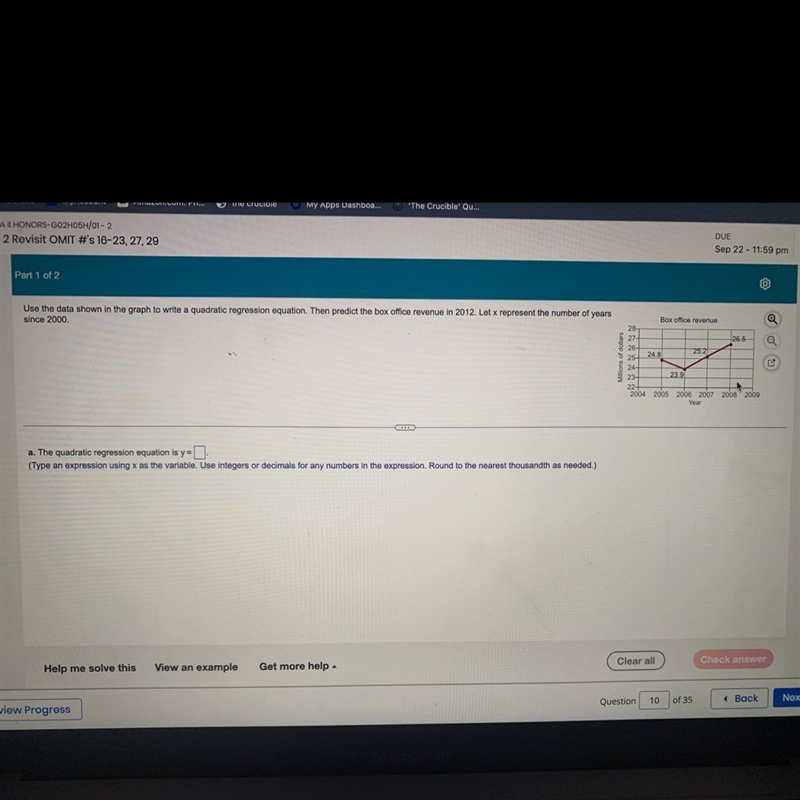As you can see, the quadratic regression equation does a reasonably good job of predicting the box office revenue for each year. However, it is important to note that this is just a model, and the actual revenue may vary from the predicted revenue.