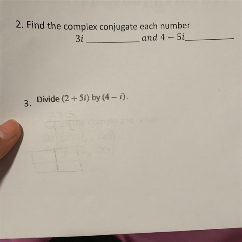To divide (2 + 5i) by (4 - i), multiply both the numerator and denominator by the complex conjugate of the denominator (4 + i) to eliminate the imaginary part in the denominator: