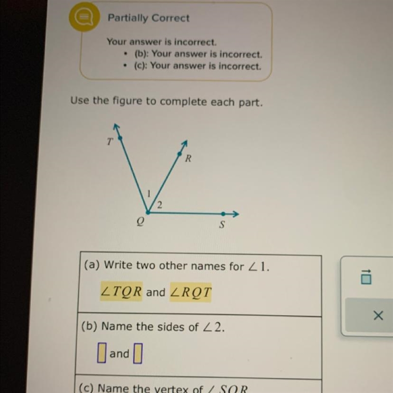 (a) Two other names for Z1 are LTQR and LRQT. In the figure, Z1 refers to the angle at vertex T. When naming angles, we typically use three letters, with the middle letter representing the vertex of the angle. So, in this case, we can name the angle as LTQ or LRQ, with T or R being the vertex.