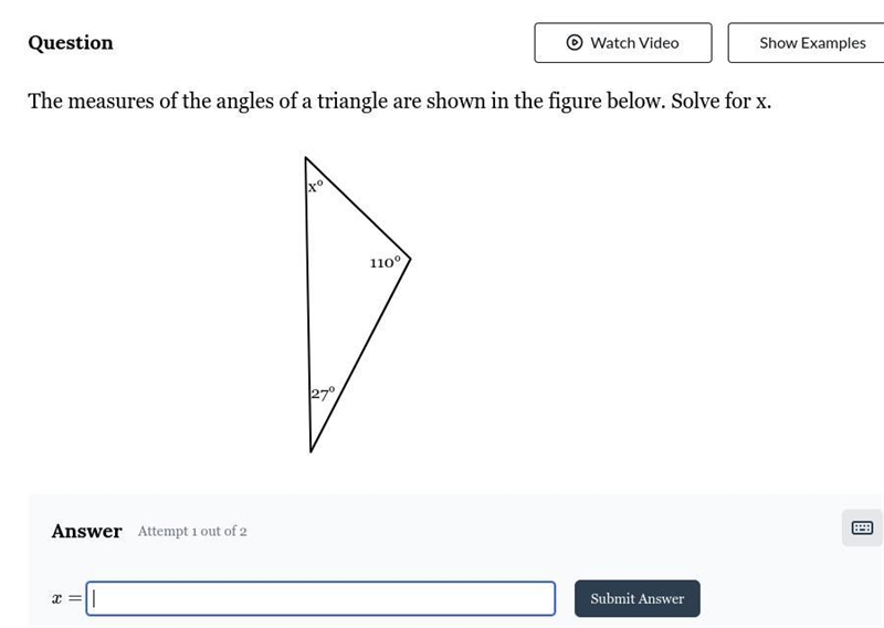 Its me again. Just do 180-110-27=43. Remember that sum of angles add up to 180 degrees. Use calculator.
