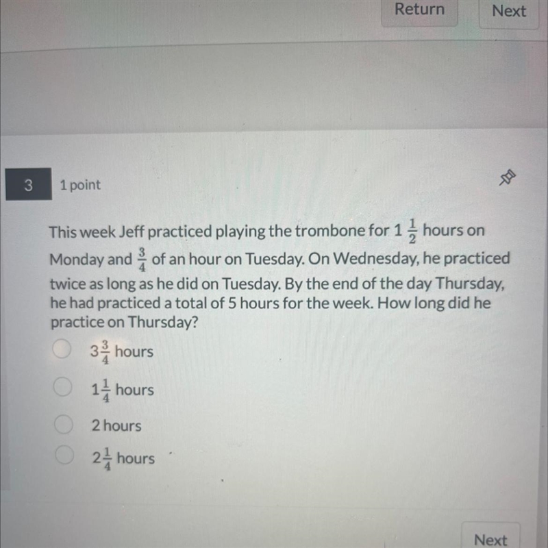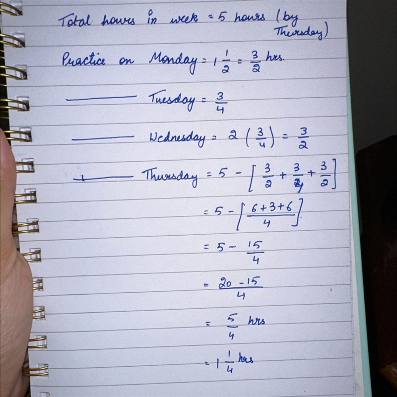 Monday and of an hour on Tuesday. On Wednesday, he practiced