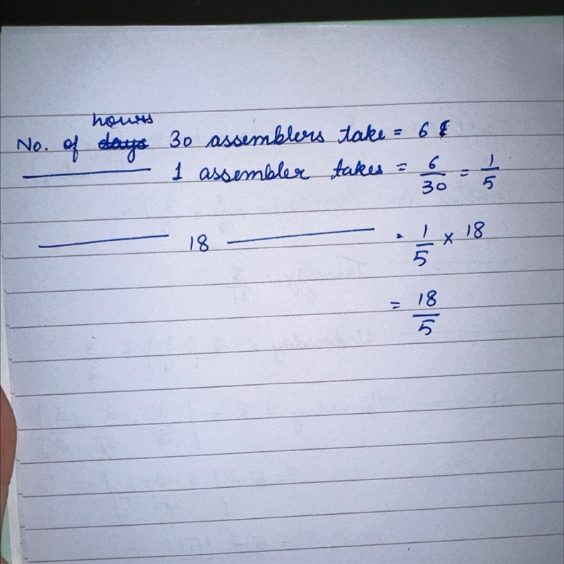 if 30 assemblers can complete a certain job in 6 hours, how long will the same job take if the number of assemblers is cut back to 18