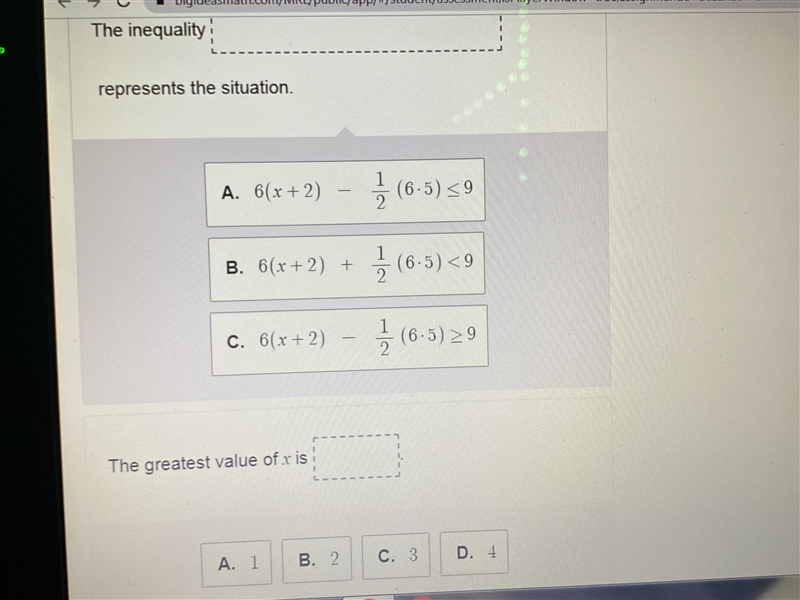 To complete the sentences, we can rewrite the inequality as 'The difference between the areas of the figure can be expressed as A - B, which is at most 9.'