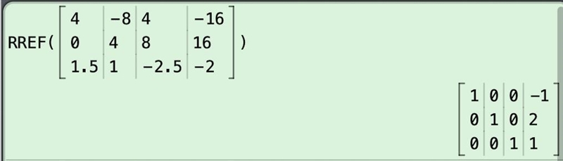 Many calculators are capable of performing the required reduction of the augmented matrix to reduced row-echelon form. The solution is found in the rightmost column of the result: