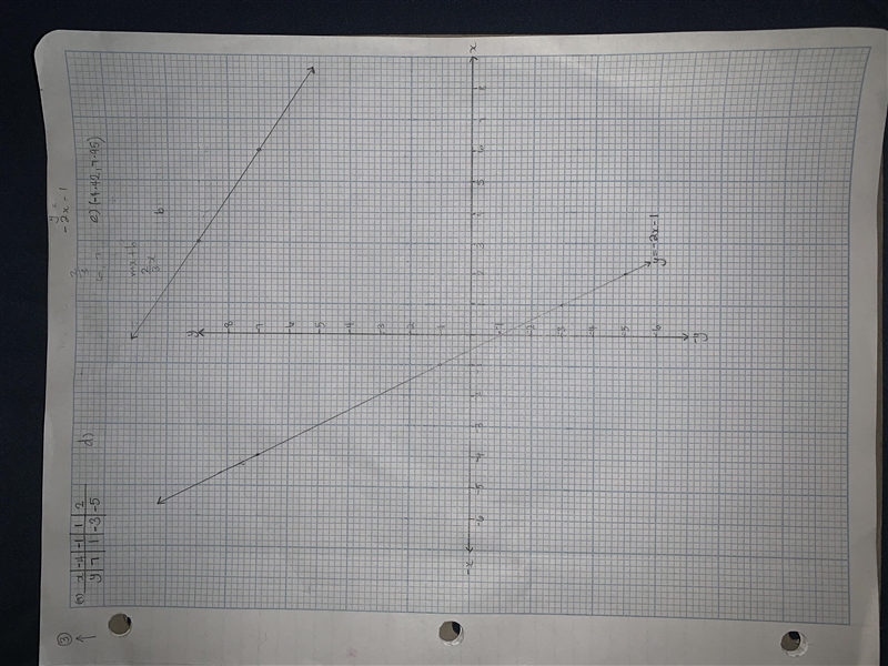 e) To find the coordinates of the point where the two lines intersect, we can solve the system of equations formed by equating the two equations.