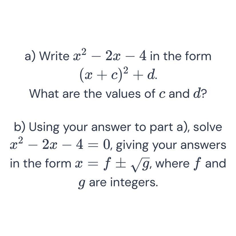 = (x - 1)² - 5 ← in the form (x + c)² + d