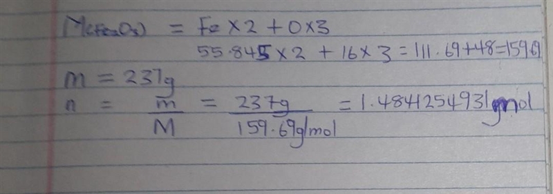 Question 3 of 21 > Learning How many moles of Fe₂O3 are in 237 g of the compound?