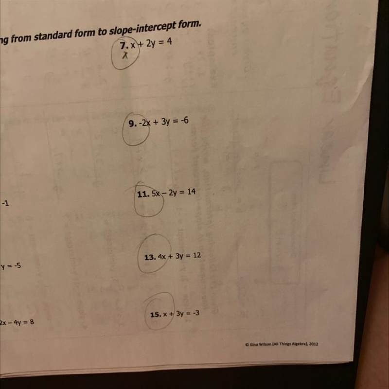 7. X + 2y = 4 (move x beside 4, since it's positive it will be negative)