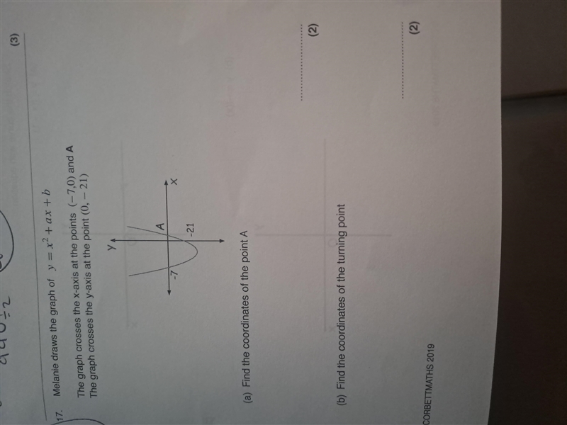 To find the coordinates of the turning point, we can use the formula x = -b/2a. Plugging in a = 4 and b = -21, we have: