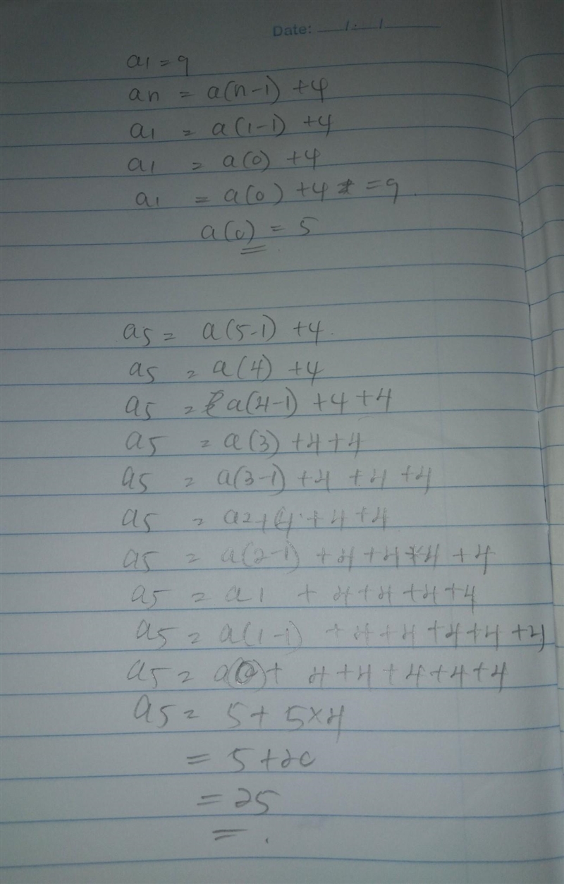 . This means that the first term of the sequence is 9 and each subsequent term is equal to the previous term plus 4.