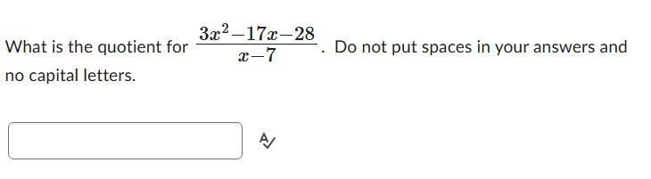 To find the quotient of the given expression we can first factor the numerator 3x² - 17x - 28.