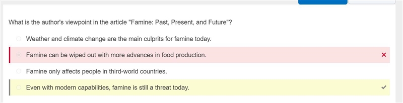 What is the author's viewpoint in the article "Famine: Past, Present, and Future"? The Answer is Even with modern capabilities, famine is still a threat today.