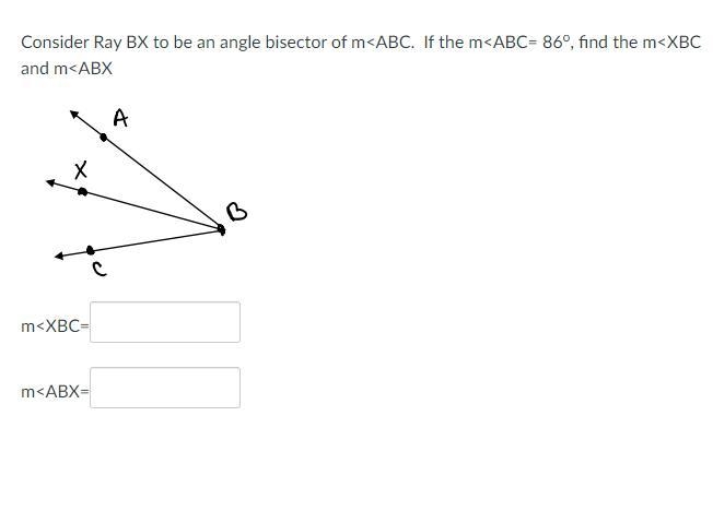 Remember, an angle bisector divides an angle into two congruent (equal) parts. In this case, Ray BX is the angle bisector of angle m.